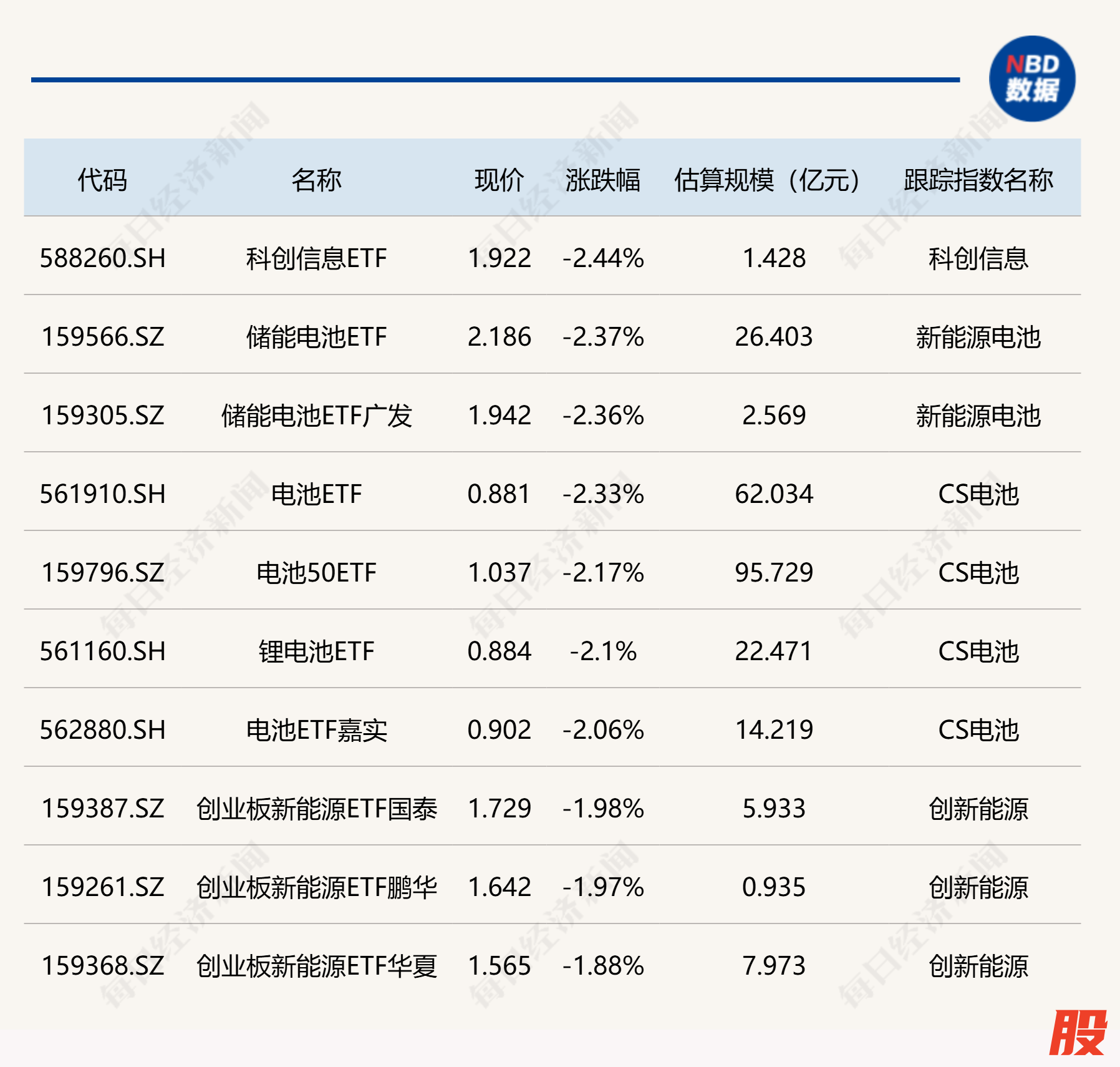 下跌方面,多只电池相关ETF跌超2%。
