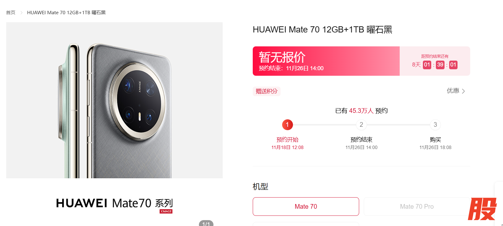 华为Mate70系列开启预订 已有超45万人预约华为Mate70系列开启预订 已有超45万人预约